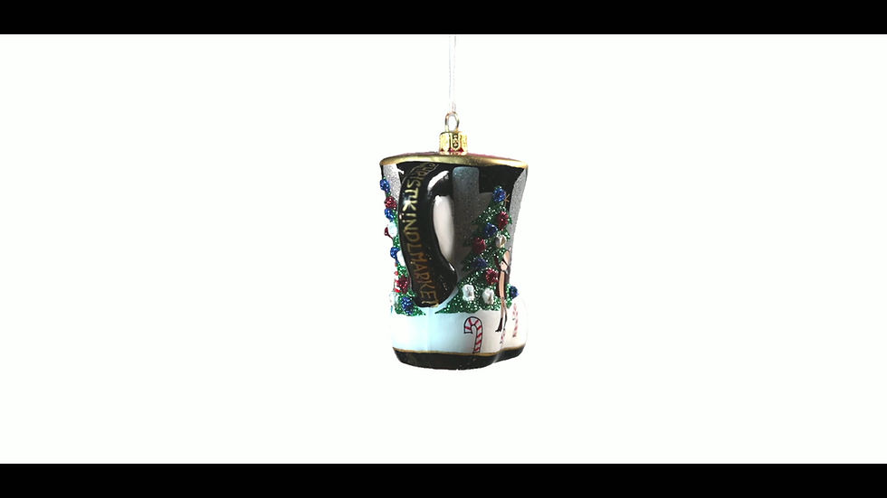 (We only ship within the U.S.A.) Hand-painted and made from high-quality glass, the ornaments feature a beautiful blend of classic and modern design elements, making it the perfect addition to any holiday decor or as a cherished keepsake. Their delicate form and radiant finish catch the light in captivating ways, creating a stunning focal point for your tree, mantel, or home. All ornaments are sold at Christkindlemart & Daily Plaza during season.
