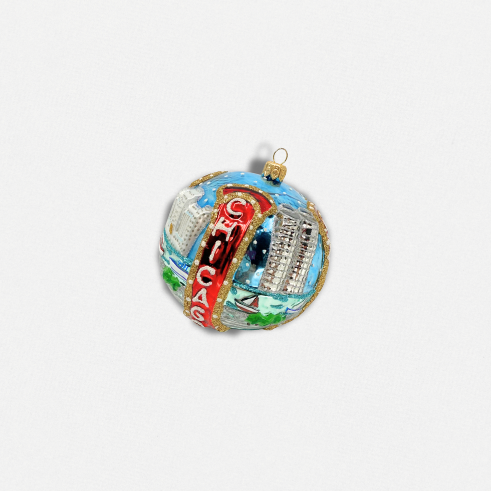 Bring the charm of Chicago’s historic entertainment scene to your holiday décor with this handcrafted glass Chicago Theatre ornament, made in Poland. Expertly crafted by skilled artisans, it showcases the theater’s iconic marquee in stunning detail with vibrant colors and a glossy finish. A perfect gift for theater lovers and Chicago enthusiasts, this ornament captures the magic of the city’s beloved landmark. All our ornaments are hand-painted glass by artisans in Poland using age old techniques.
